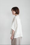 衿ぐりを同生地で切り替え、さりげないアクセントにしたアイテム。首の後ろでボタン留めするスッキリとしたデザインです。Tシャツライクなデザインながら、シャツのきちんと感ある素材を使用しているので、幅広いシーンで着用できるアイテム。ワードローブに加えて欲しい1枚です。