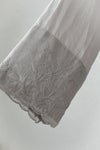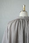 中国汕頭(スワトウ)の、 デットストックの汕頭ハンカチをリメイクしたチャーチブラウスです。 160番手の繊細なラミー生地にたっぷりギャザーを入れて、 ボリュームを出しています。 長めの着丈なのでジレやべストと相性のよい一着。 ハンカチの刺繍は全て手仕事で作られています。