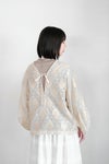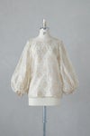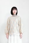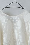 インドで織り上げられたコットンシルクのカットジャガード生地を使用しています。 程よいシアー感が特徴的です。 たっぷりギャザーが入った立体的な袖がポイント。 同シリーズのスカートとセットアップがおすすめです。