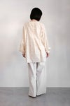 前身頃の両サイドに深いスリットを入れたロングプルオーバーシャツ。