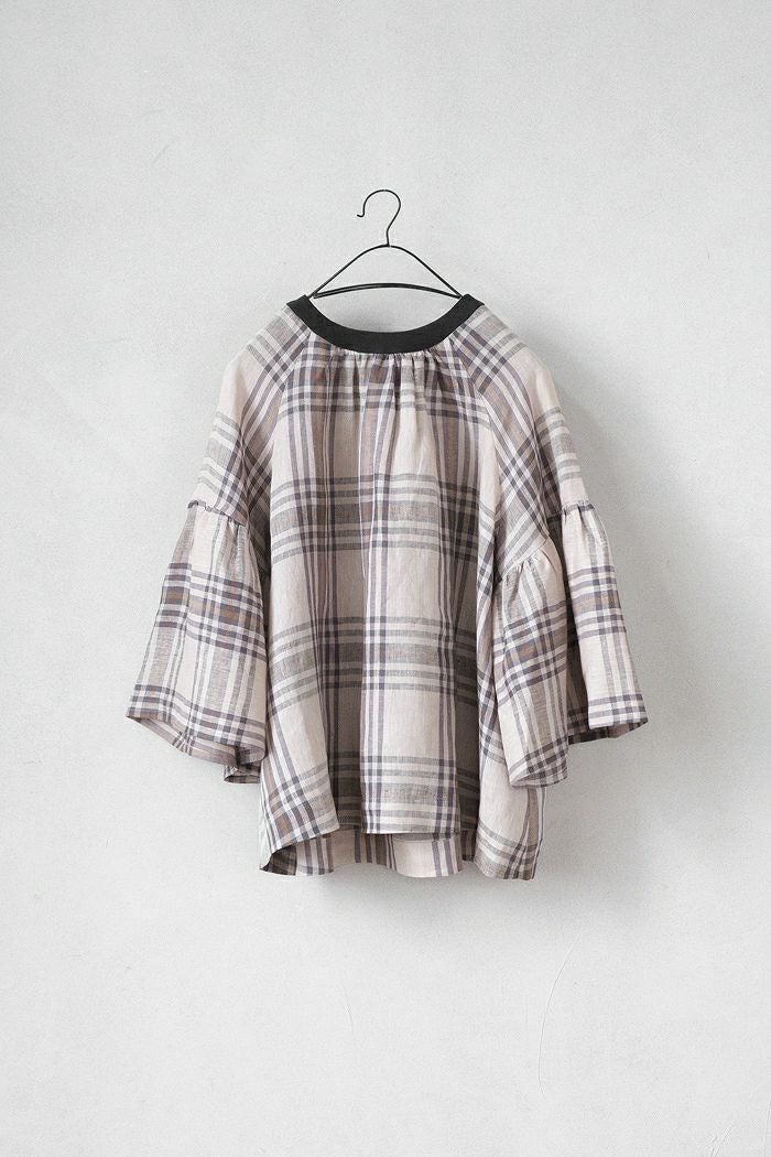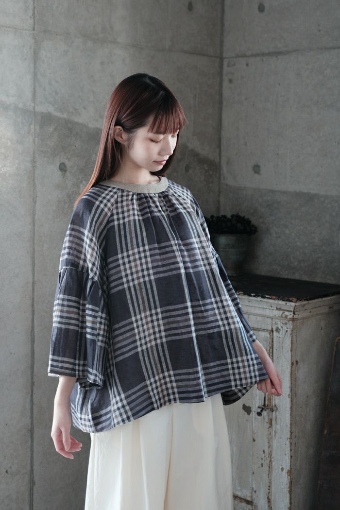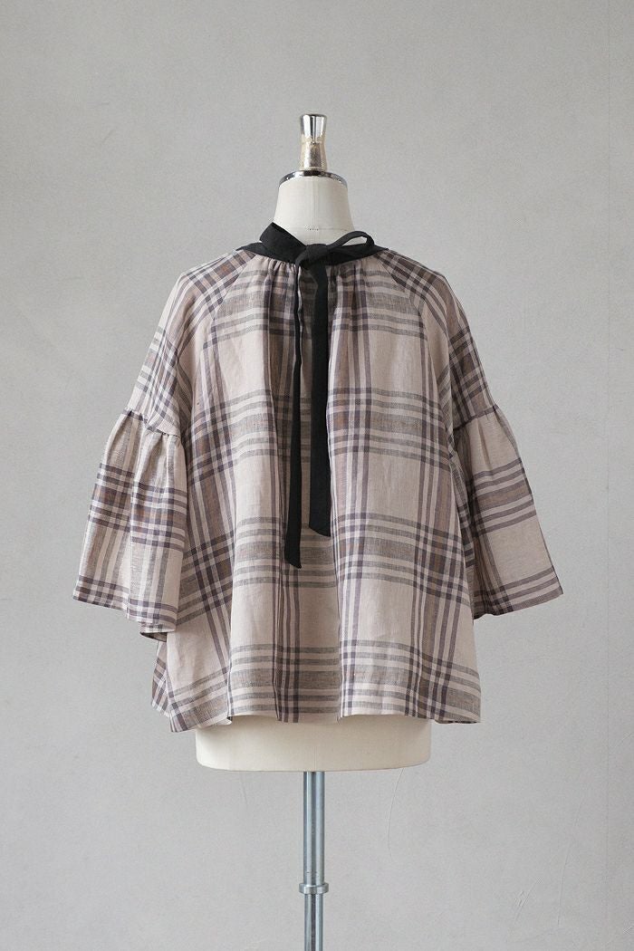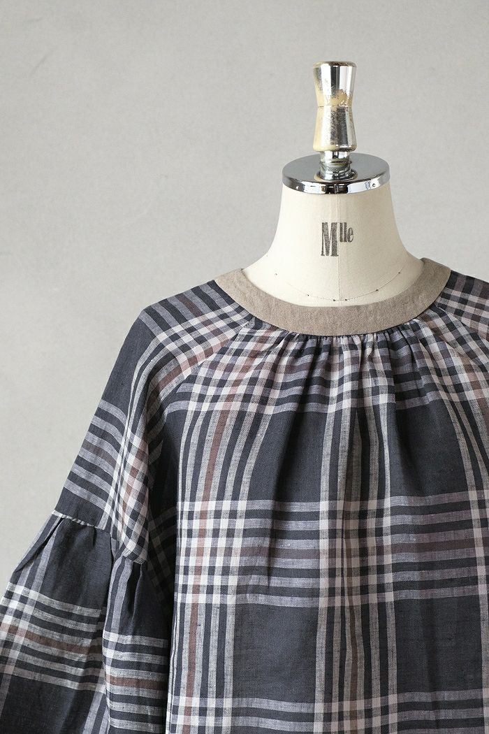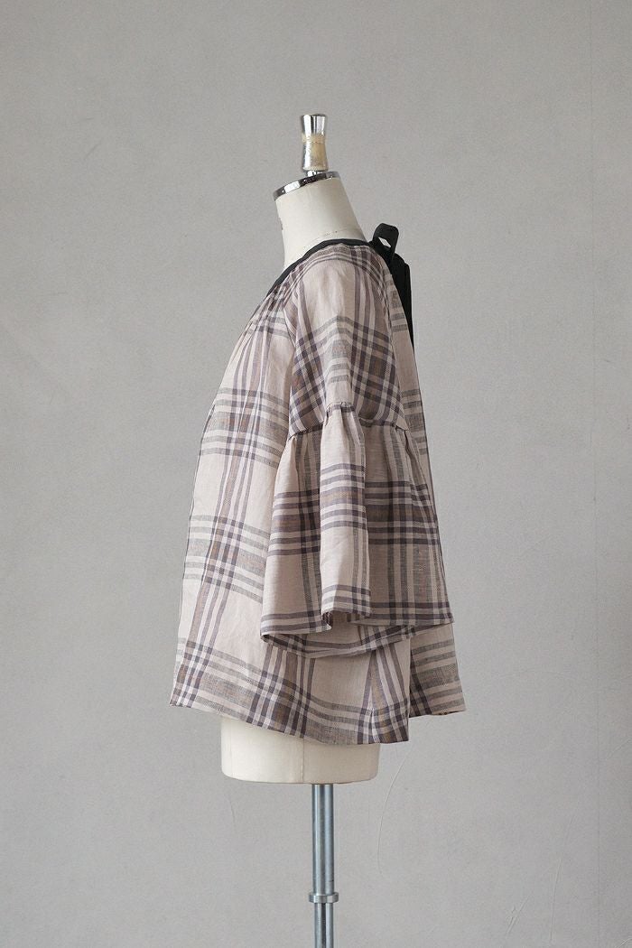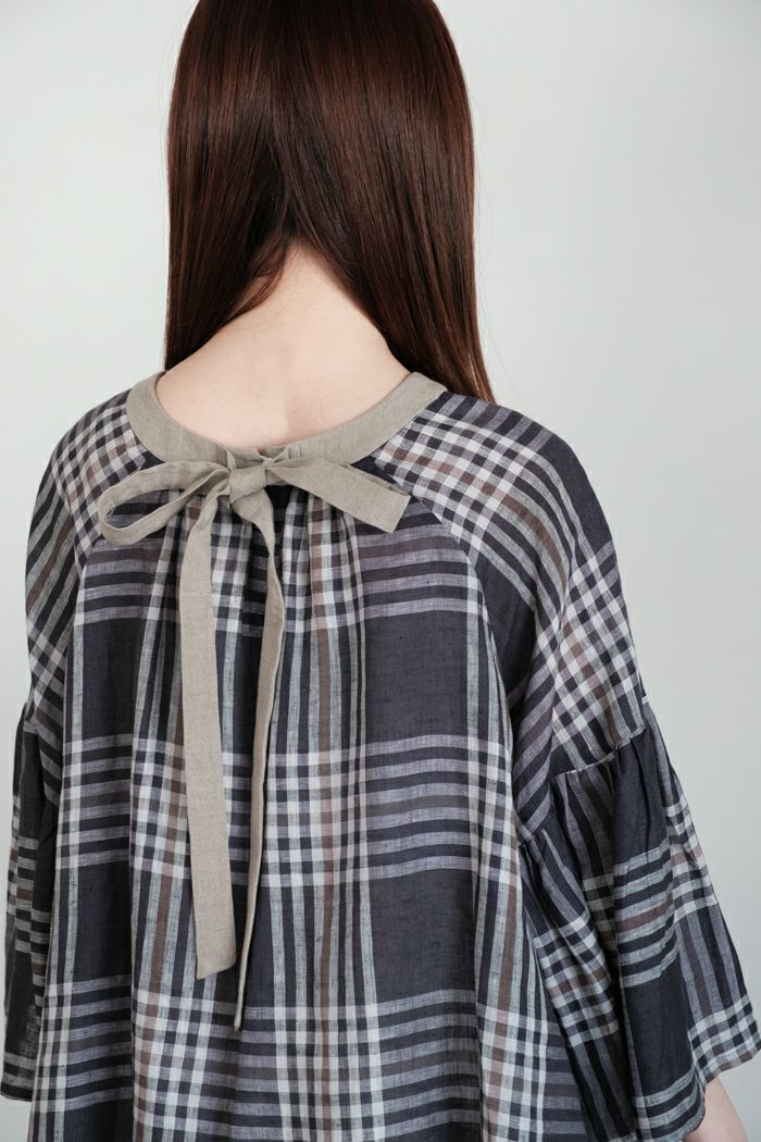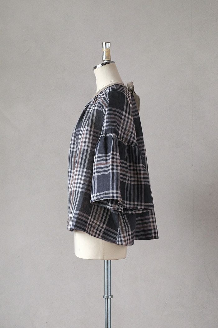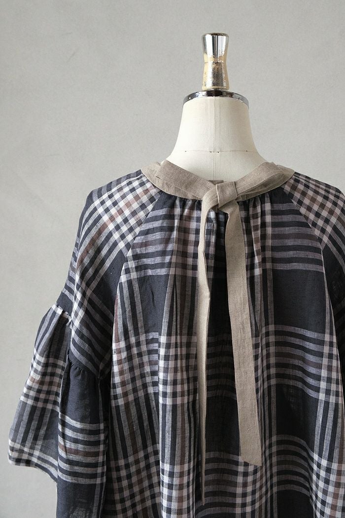グランチェックリネンバックリボンプルオーバー(24SS)