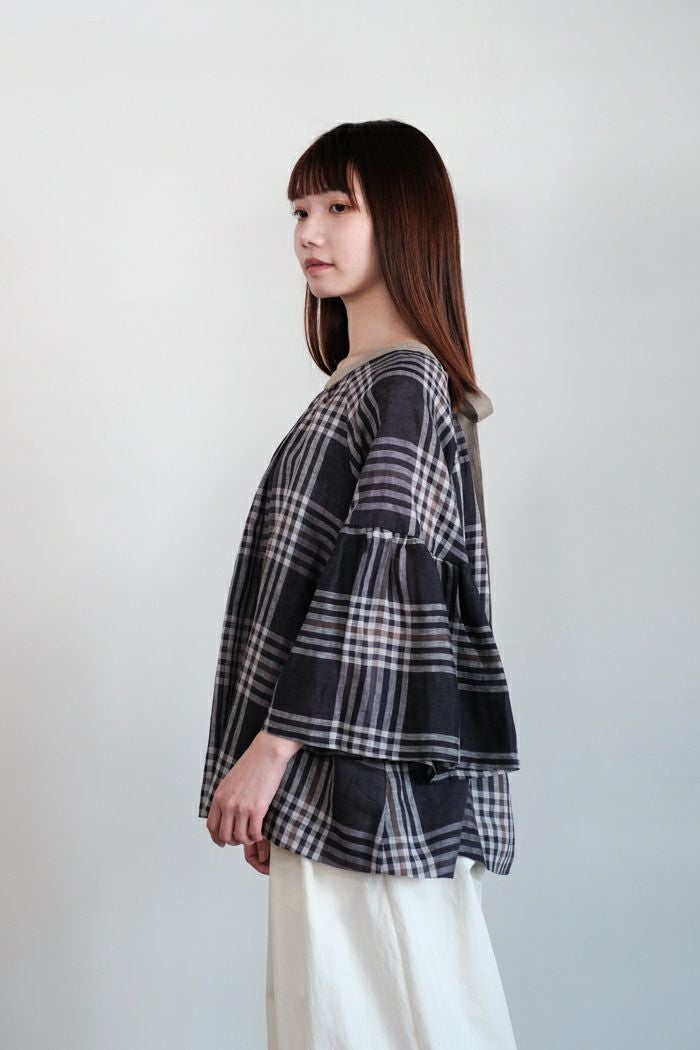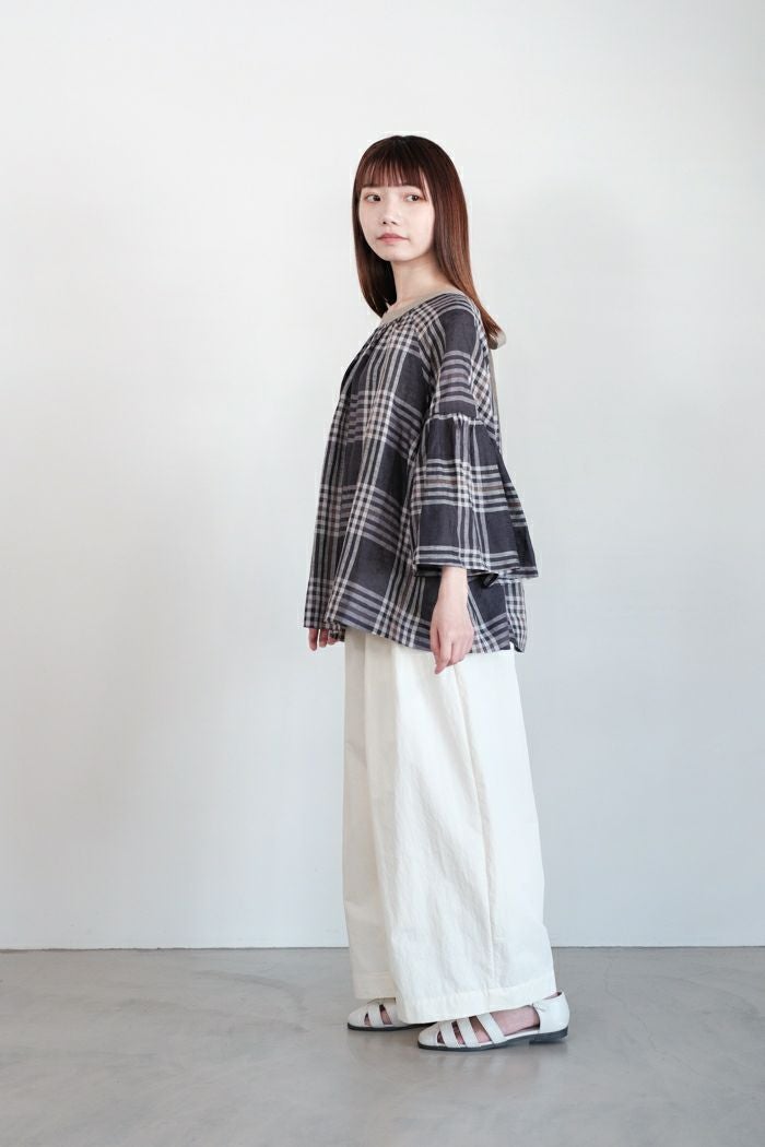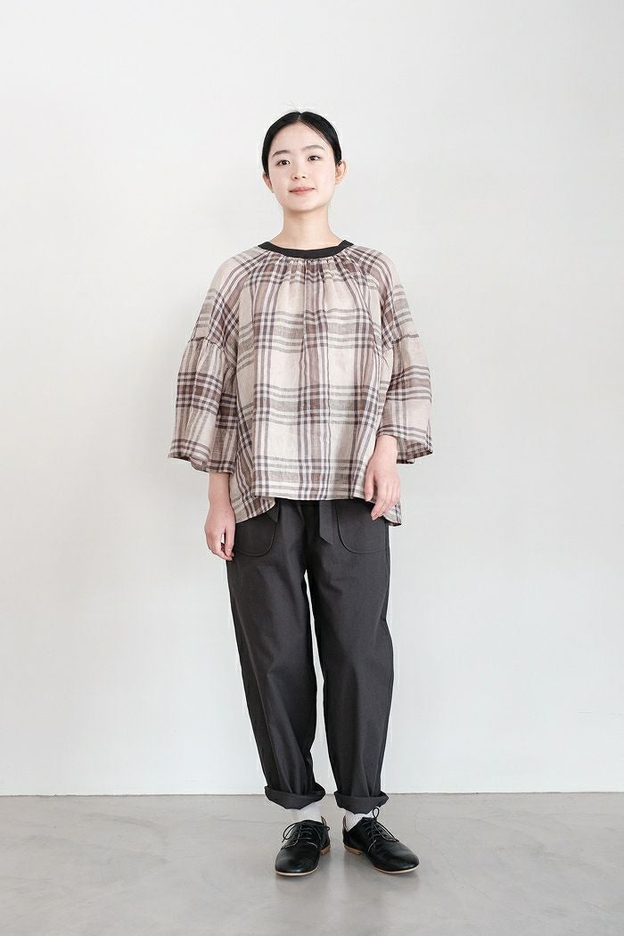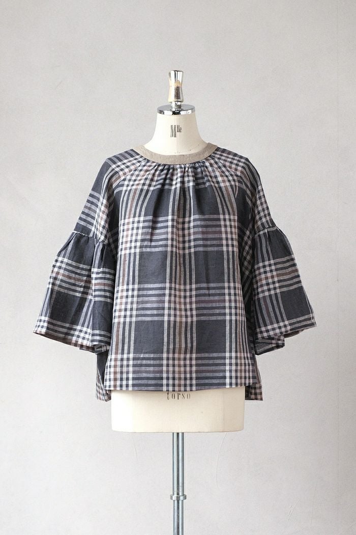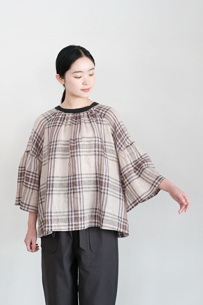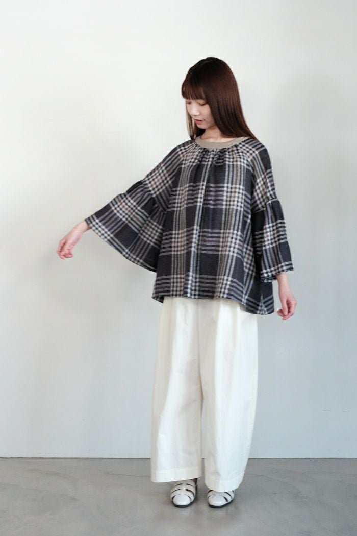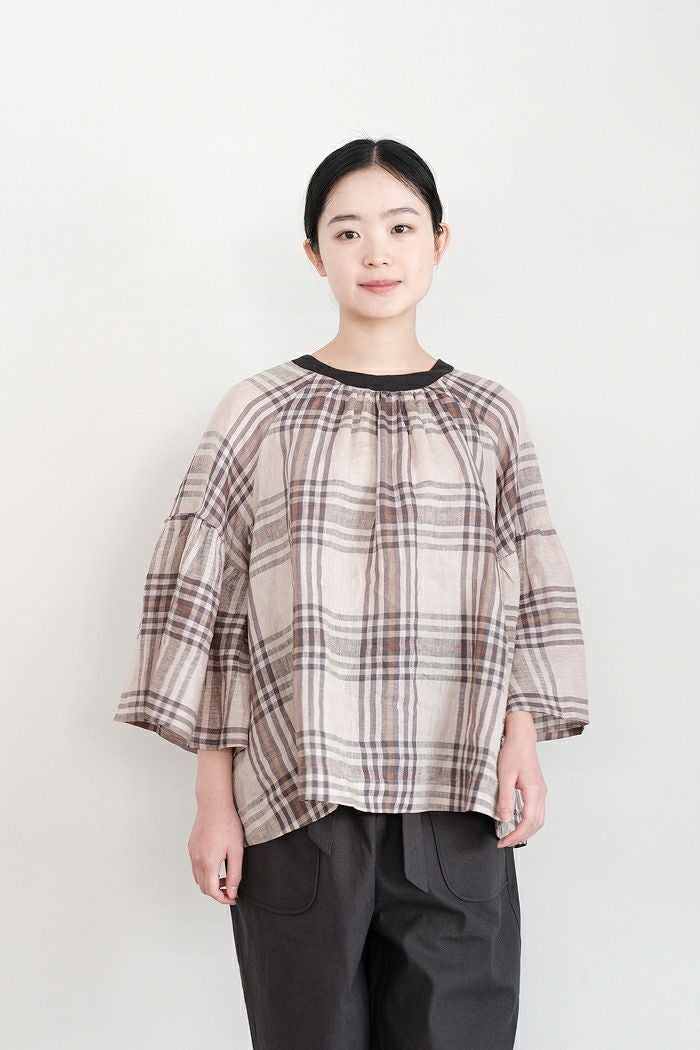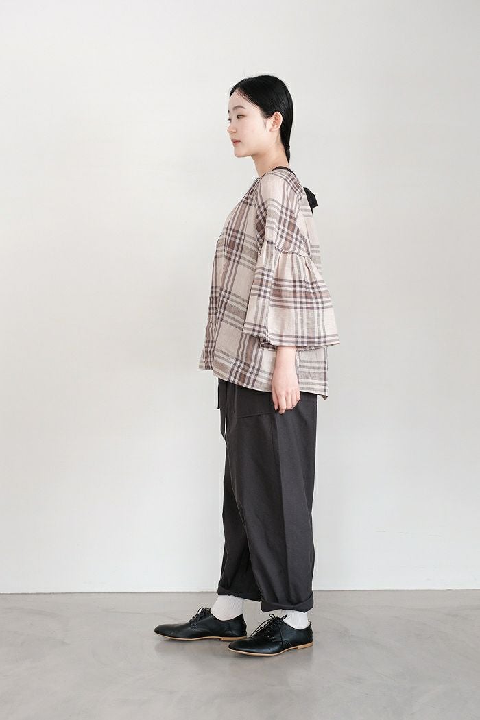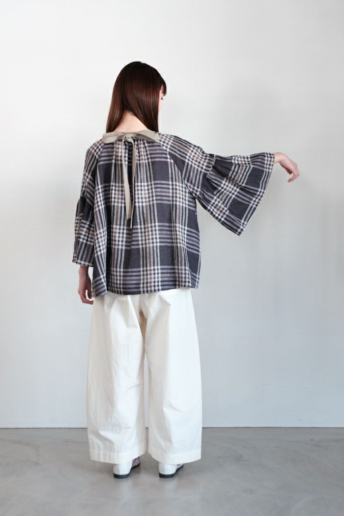 グランチェックリネンバックリボンプルオーバー(24SS)