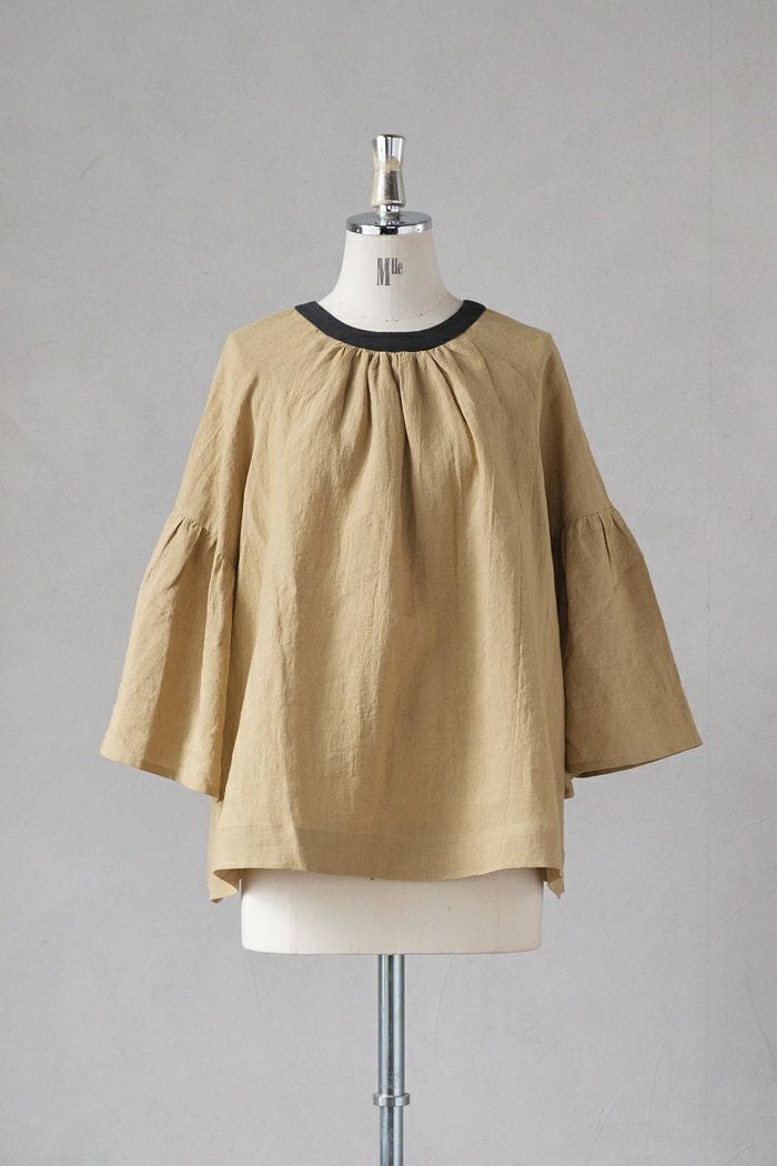 フレンチリネン リボンタイギャザーブラウス(23AW)