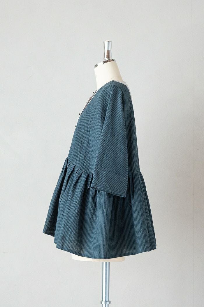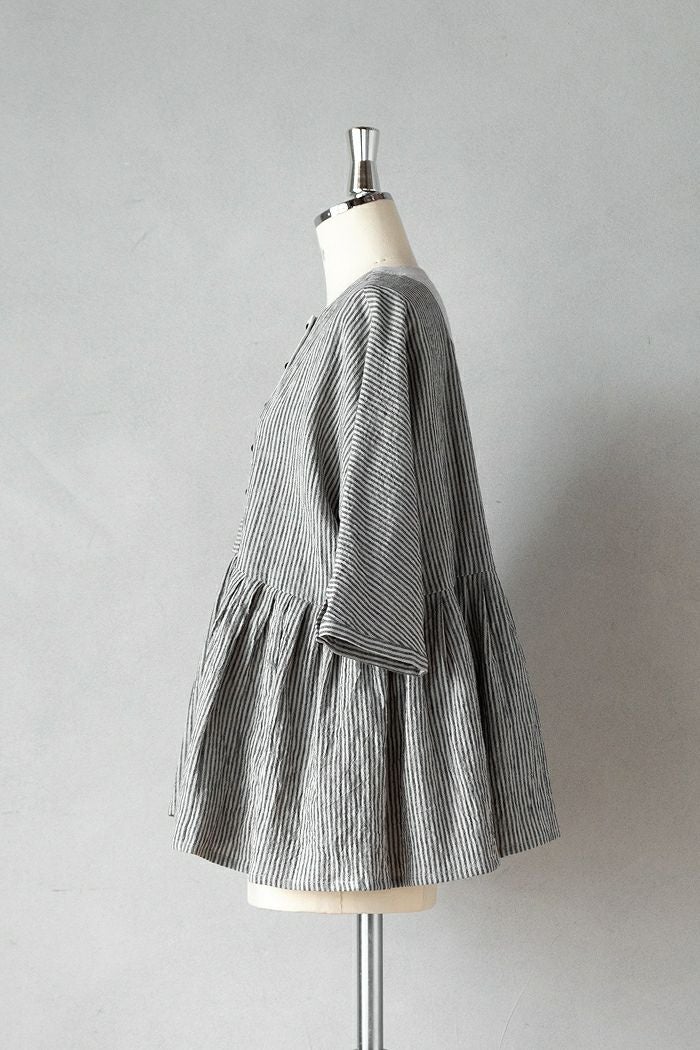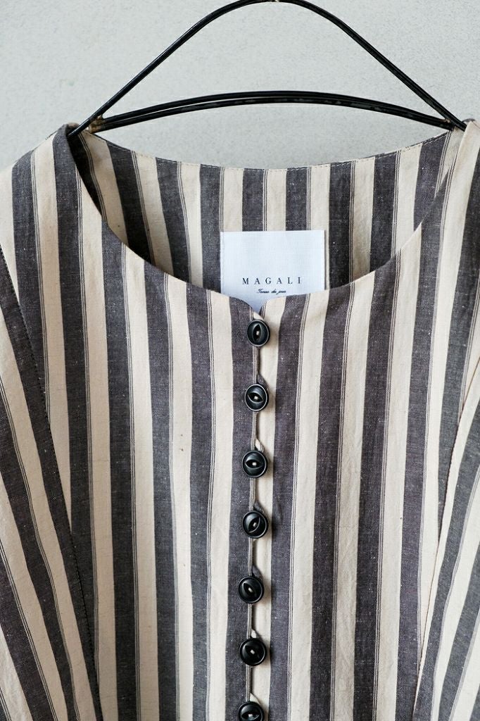 リネンコットンストライプ・サイドボタンプルオーバー(25SS)