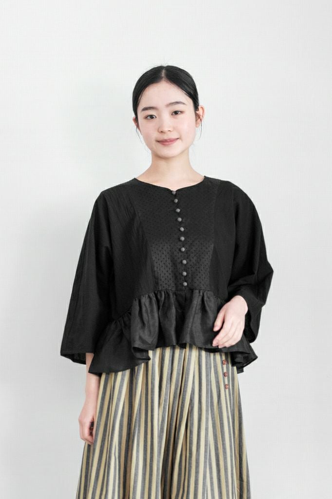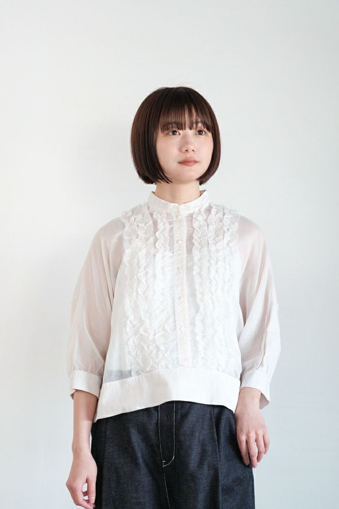 コットンシルクブレイドフリルカラーブラウス(26SS)