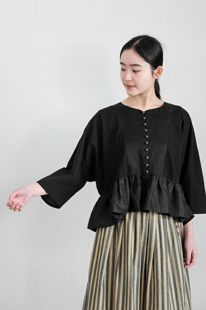ピンドットリネン&コットンアンティークブラウス(24SS)