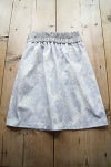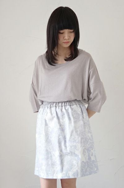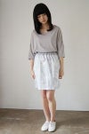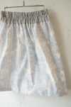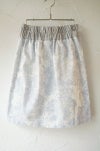 よく見ると猫が何匹も描きこまれたオリジナルプリントのギャザースカート。高密の白いコットン地に、グレー系の濃淡で描かれています。コシのある高密のコットン生地で、ラフに穿き回せるカジュアルな素材感。ウエストゴムでギャザーを入れていますが、ギャザー感があまりでない台形シルエット一枚で穿いていただけます。