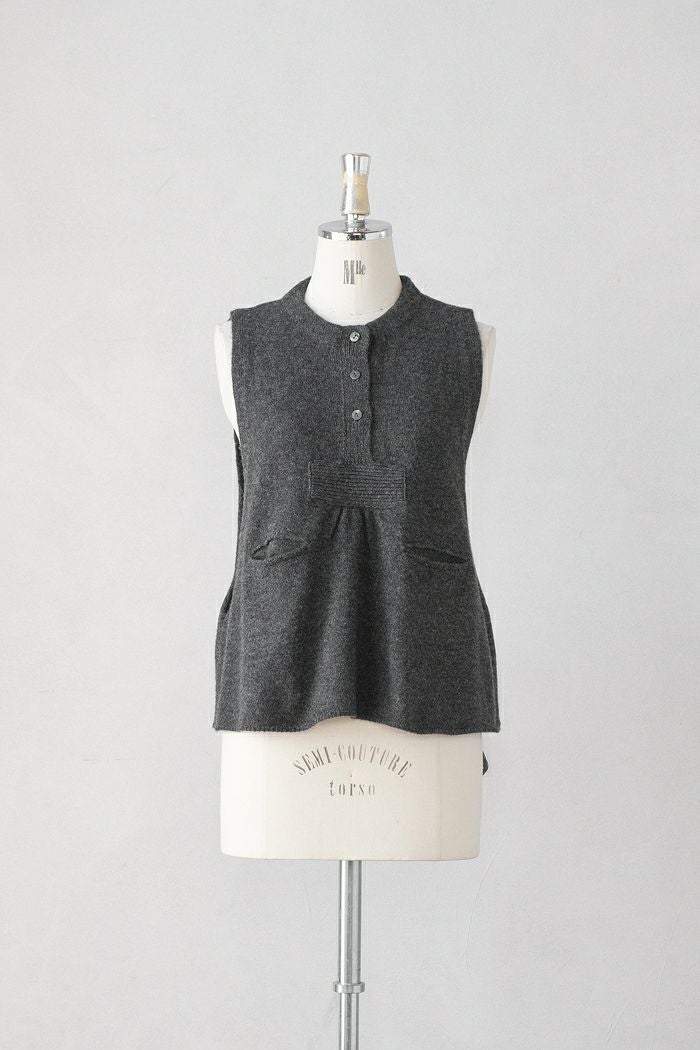 裾巾がワイドなニットベスト。