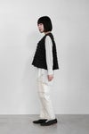 ポンポンの糸を手横編み機で編みこんだローゲージニット。