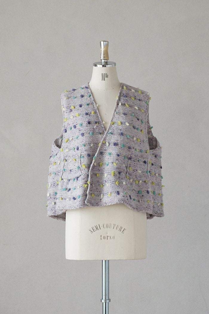 多色使いの糸とカラフルなボンボンが可愛いニットベスト