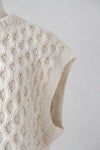 棒針で編まれたハンドアラン柄ベストです。
