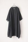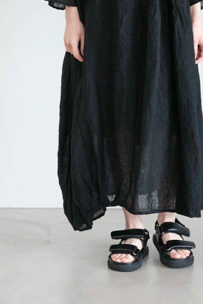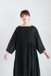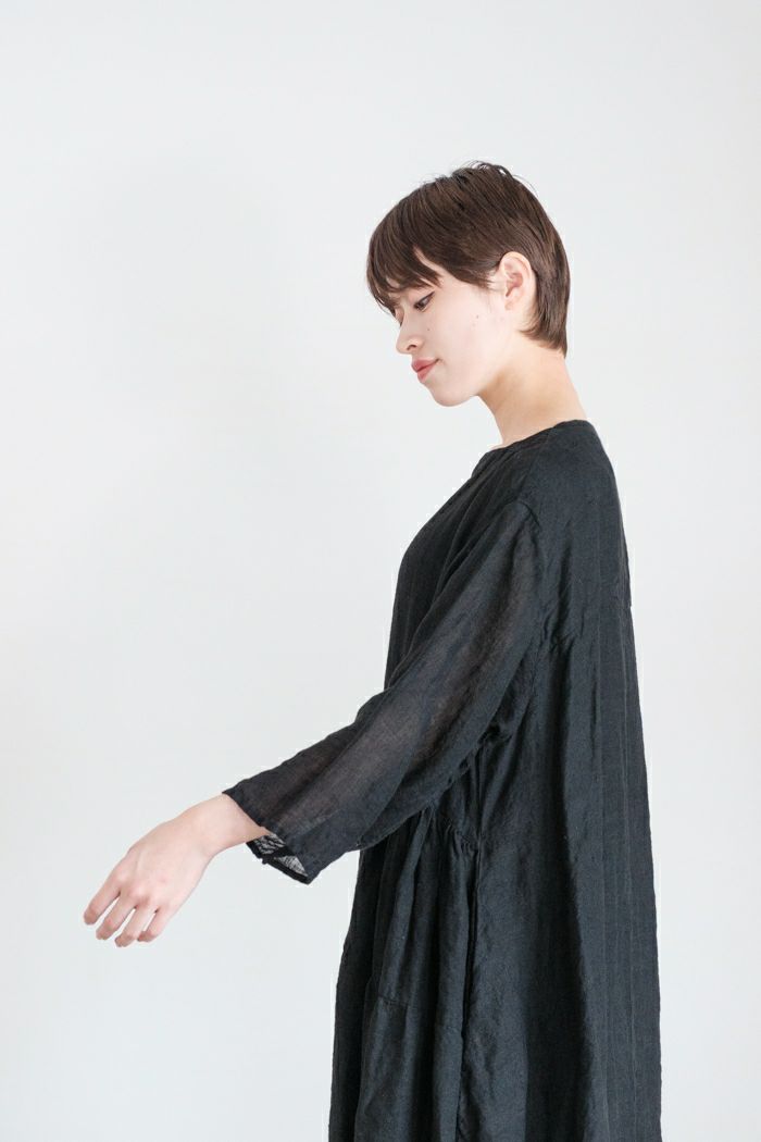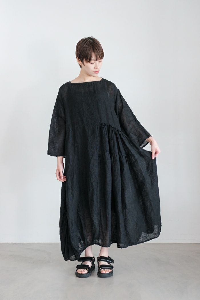 インドの手織りリネンを使用したマルチギャザーボートネックドレス。
