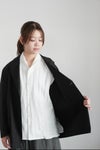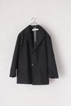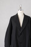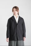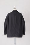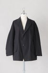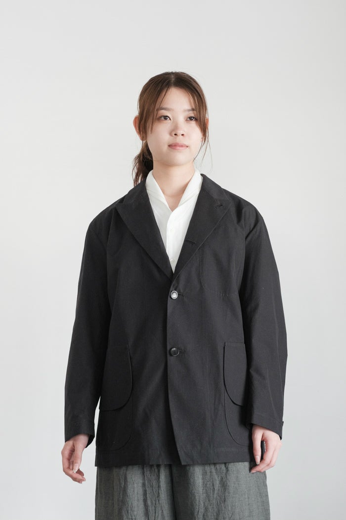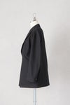 春の商人用の一重のシンプルなピークドラペルのボックスシルエットジャケット。