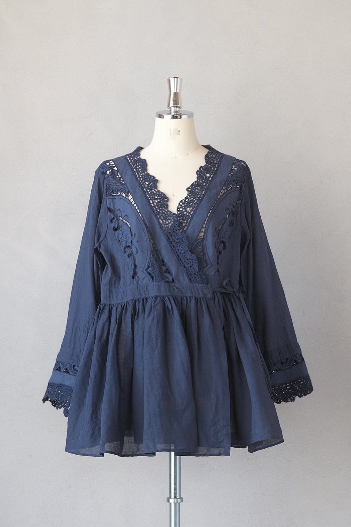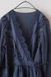 中国汕頭(スワトウ)でヨーロッパ向けに作られた、 デットストックのボビンレースとカットワークのパーツを使用しています。 材料が限られているため、希少なヴィンテージのリミテッドエディションです。ボビンレースとカットワーク刺繍は全て手仕事で作られいています。