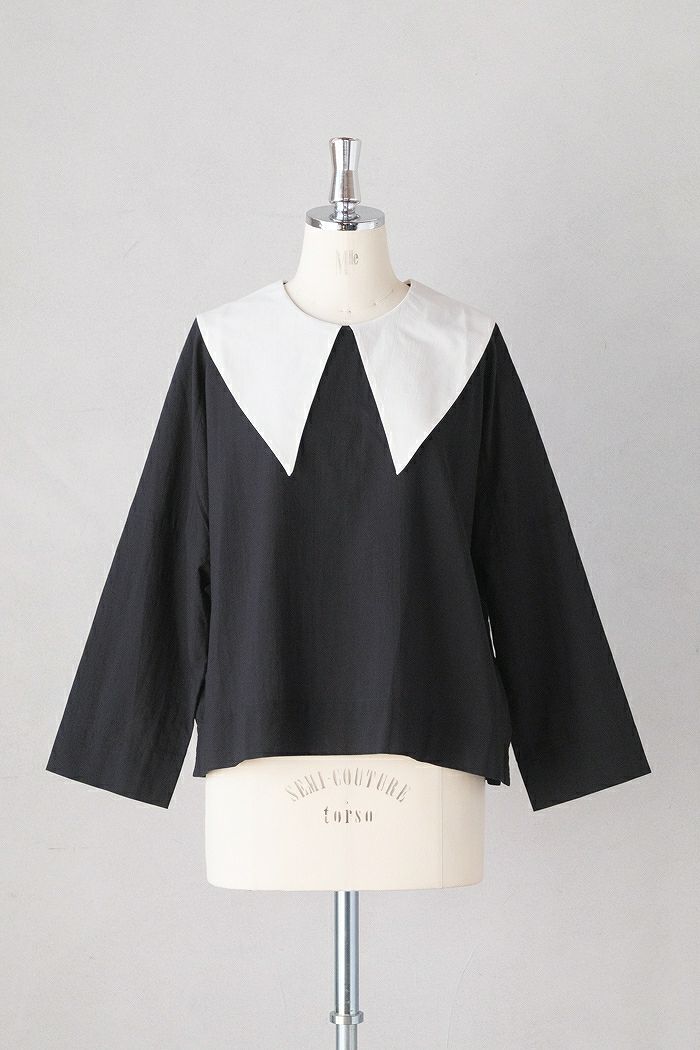 配色の大きな襟が印象的なプルオーバーブラウス