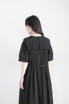 ハンカチのような四角い襟と、胸元に規則正しく配したタックが礼儀正しさと厳かな雰囲気を与えてくれるワンピース。