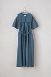 クラシカルな雰囲気を持つスクエアカラーのワンピースは、1枚でサマになり、カーディガンを重ねて襟を出すのも可愛い。共布のベルト付きで、ウエストベルトを通してメリハリのあるスタイリングが楽しめます。両脇にポケット付き。