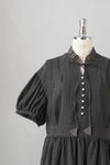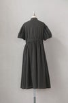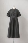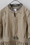フロントには小さなクルミボタン、 襟元にはこじんまりと寄せたコットンローンのフリル。