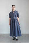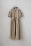 アンティーク風の趣深いコットンリネン・ファブリックを使用したストライプワンピース。