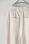 ウエスト総ゴム&内紐入りのイージー仕様。 内紐により若干のサイズ調整が可能です。 股上が深く、腰回りはゆったりとしており、 裾にかけてゆるやかに細くなるシルエット。
