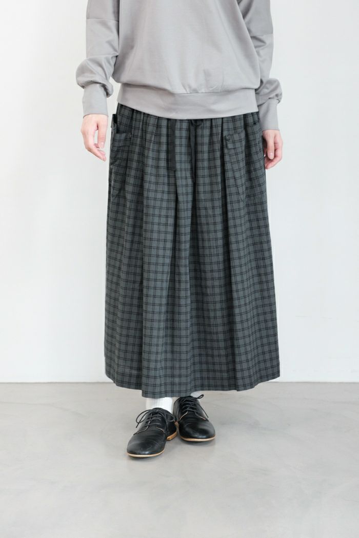 ノスタルジックな色合いの小さな格子柄のギャザースカート