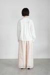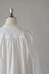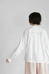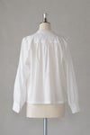 肩や袖口、背ヨークにギャザーをたっぷり入れた、ふんわりとしたシルエットが印象的な1枚。