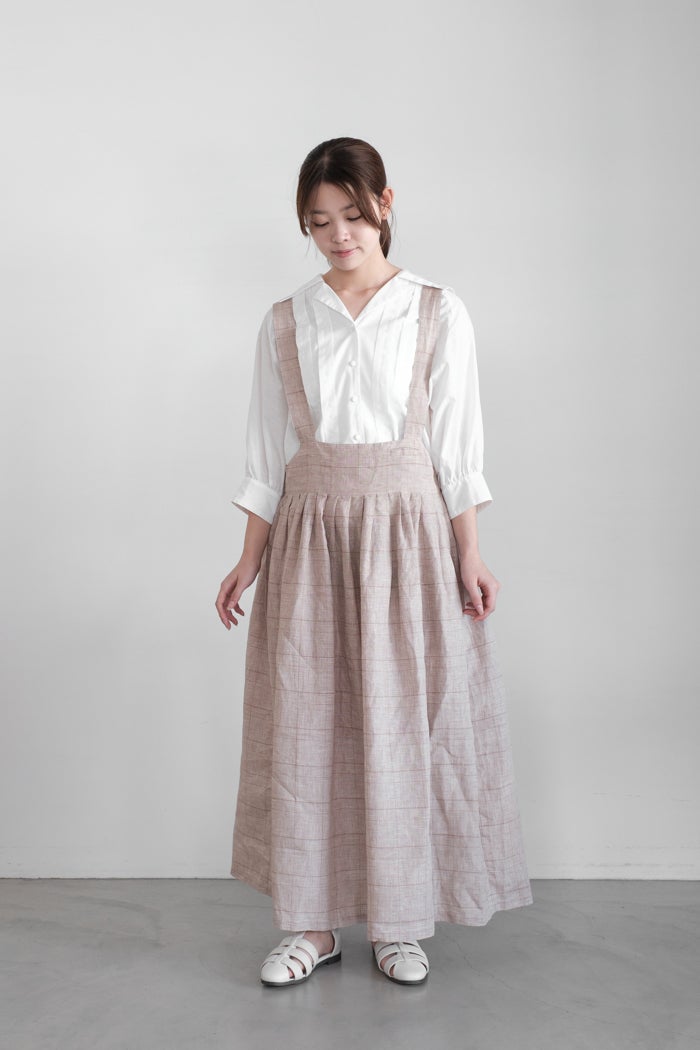 清涼感あるグレンチェックのリネンジャンパースカート