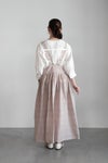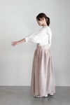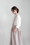 ややネップ感のある生地は、オンオフ問わずに着用しやすく、活躍の幅が広いアイテム。スカート部分はたっぷりのギャザーを入れて、ふんわりと膨らむシルエット。