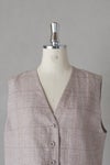清涼感のある上質の薄手リネン生地を使用したベスト。 シックな色合いのグレンチェックで、シーズンレス着用しやすい素材感です。