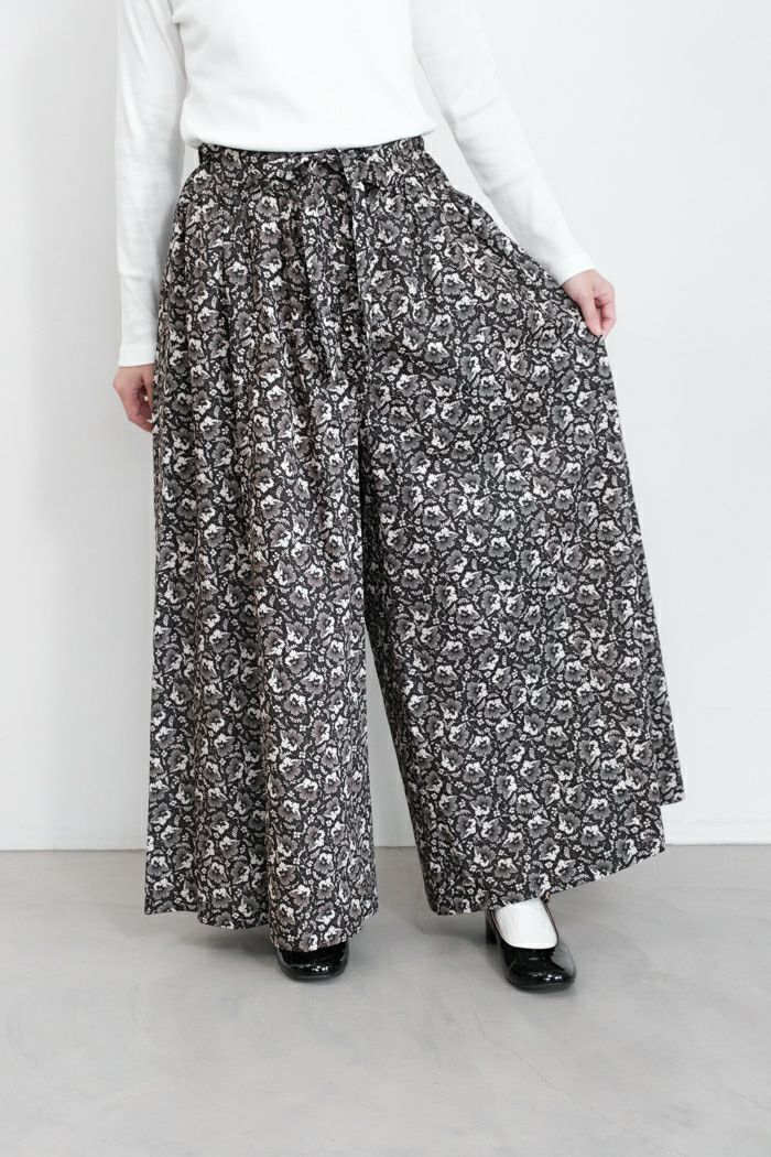 秋らしいリバティプリントを使用したワイドパンツ