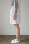 よく見ると猫が何匹も描きこまれたオリジナルプリントのギャザースカート。高密の白いコットン地に、グレー系の濃淡で描かれています。コシのある高密のコットン生地で、ラフに穿き回せるカジュアルな素材感。ウエストゴムでギャザーを入れていますが、ギャザー感があまりでない台形シルエット一枚で穿いていただけます。