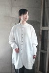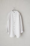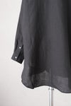 アンティークのシャツに見られる、前立てが大きくラウンドしたデザインで、全体的にゆったりとしたシルエットに仕上げています。 リネン独特の程よいハリ感と着心地のよさを実現しています。
