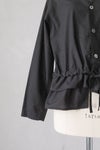 ティアードデザインのシャツブルゾン。 名前はブルゾンとなっていますが、 軽くて柔らかなシャツ感覚のアイテムです。 ウエスト付近の紐できゅっとギャザーを寄せてアレンジを楽しめるデザイン。 アシンメトリーな裾ラインがポイント。 薄手なので春アウターのインにも着ていただけます。