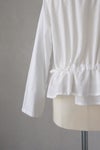 ウエスト付近の紐できゅっとギャザーを寄せてアレンジを楽しめるデザイン。