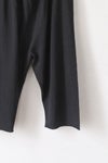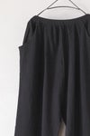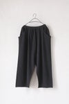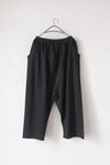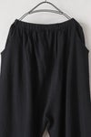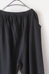 ウエストは総ゴムで快適に着用できるデザイン。両サイドに立体的に配されたポケットは、デザインの一部としてアクセントになっています。 股上がぐっと下がったシルエットで、肌離れ良いゆるさが特徴です。