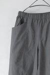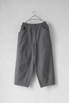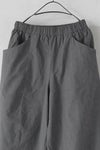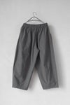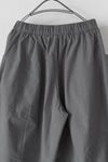 ウエストは総ゴムで着用しやすいデザイン。ハリコシを持ったコットン素材に洗いざらしたような柔らかな風合いも感じられるよう加工を施こした1本です。