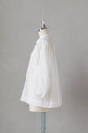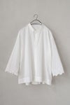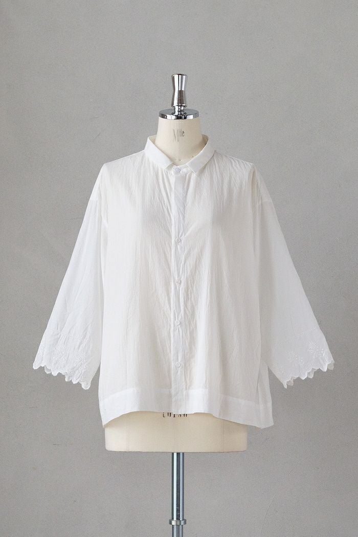 袖口に刺繍レースをあしらったシンプルなシャツ。