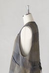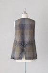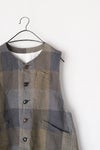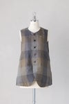 クラシカルな印象のロングベスト。やや裾広がりの、重ね着しやすいシルエットです。後ろ身頃裾にセンターベント入り。 長めの着丈なので、前を開けて羽織る着こなしがサマになります。ブラウスやワンピースの上に重ねるだけでオシャレな一着。 ポケットあり、コットン裏地付き。
