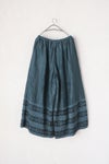 細かなギャザーがエレガントなギャザーパンツ。薄手ジャガードの生地感を活かしたデザインです。 裾切り替えに花柄を使用しており、コーディネートのポイントに。ウエストはゴム+紐で調節可能です。