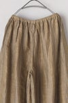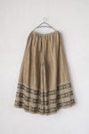 細かなギャザーがエレガントなギャザーパンツ。薄手ジャガードの生地感を活かしたデザインです。 裾切り替えに花柄を使用しており、コーディネートのポイントに。ウエストはゴム+紐で調節可能です。