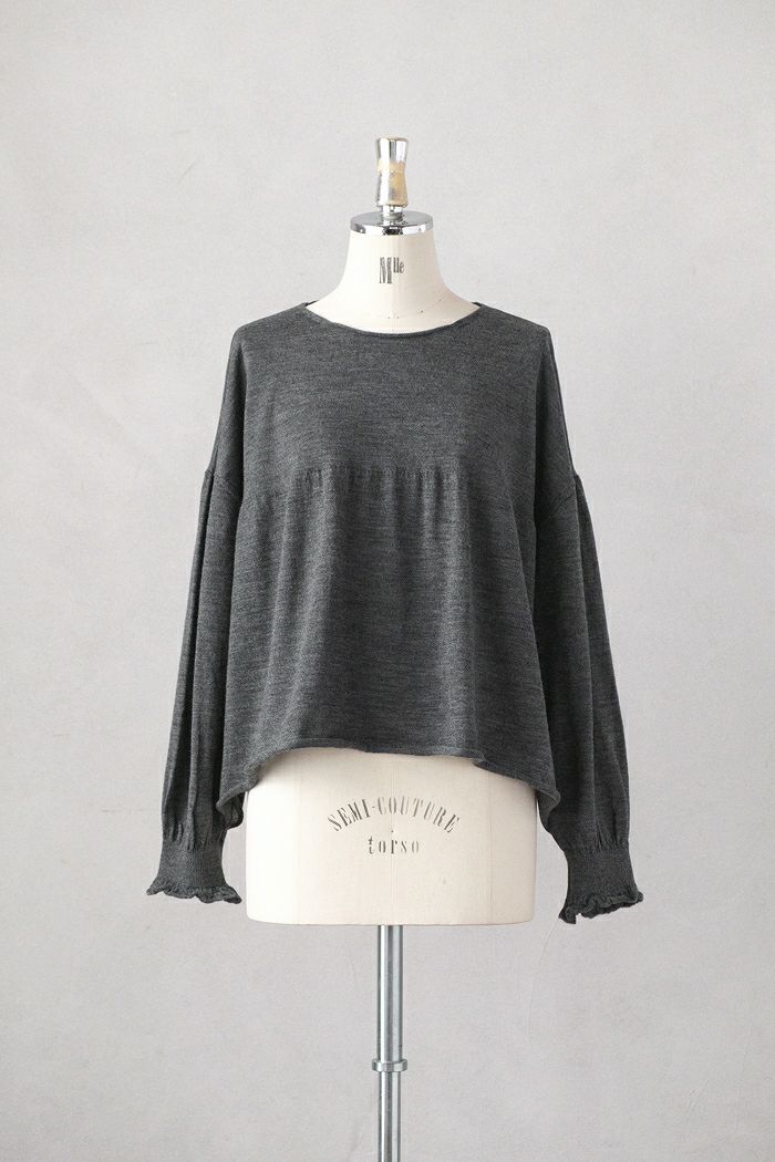 ドロップした肩からふわっとふくらんだギャザースリーブと、