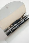 iroseの人気モデル「FOLD 3F WALLET。艶やかな光沢のあるガラスコーティングを施した牛革の長財布です。ガラス革の光沢はエナメルよりも柔らかく上品で、とてもエレガントでスタイリッシュ。3層重ねのフタは、それぞれを開けてお金やカードを収納でき、すっきりと整理しやすい仕様です。機能性と美しさを兼ねそろえた、iroseならではのエレガントなデザインです。