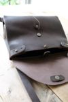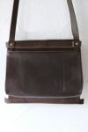 人気のSACK FLAT BAGシリーズのショルダーバッグ。実用的なサイズ感の(M)に新色のダークブラウンが加わりました。レトロな雰囲気の漂う薄型のバッグで、書類封筒をデフォルメしたユニークなデザイン。ストラップの長さ調整ができ、斜め掛けが似合います。男性にも使っていただけるユニセックスタイプです。シボ感のある柔らかな牛革を使用しています。玉紐を巻いて綴じる丸タックがアクセント。レザー内ポケット付き。