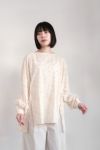 前身頃の両サイドに深いスリットを入れたロングプルオーバーシャツ。