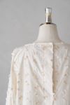 地模様のチェック柄のコットン生地に立体感のある糸巻刺繍を施した、