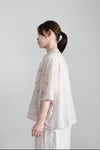 ブラウスいっぱいに広がる刺繍がアイテム。 同色の刺繍で色数は少ないながらも、繊細な手仕事に目を奪われる1枚です。