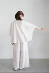 ベースは上質な浜松産細番手の強撚コットン生地を使用。ワイドでゆったりとしたリラックス感あるシルエットが魅力のアイテムです。