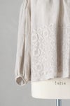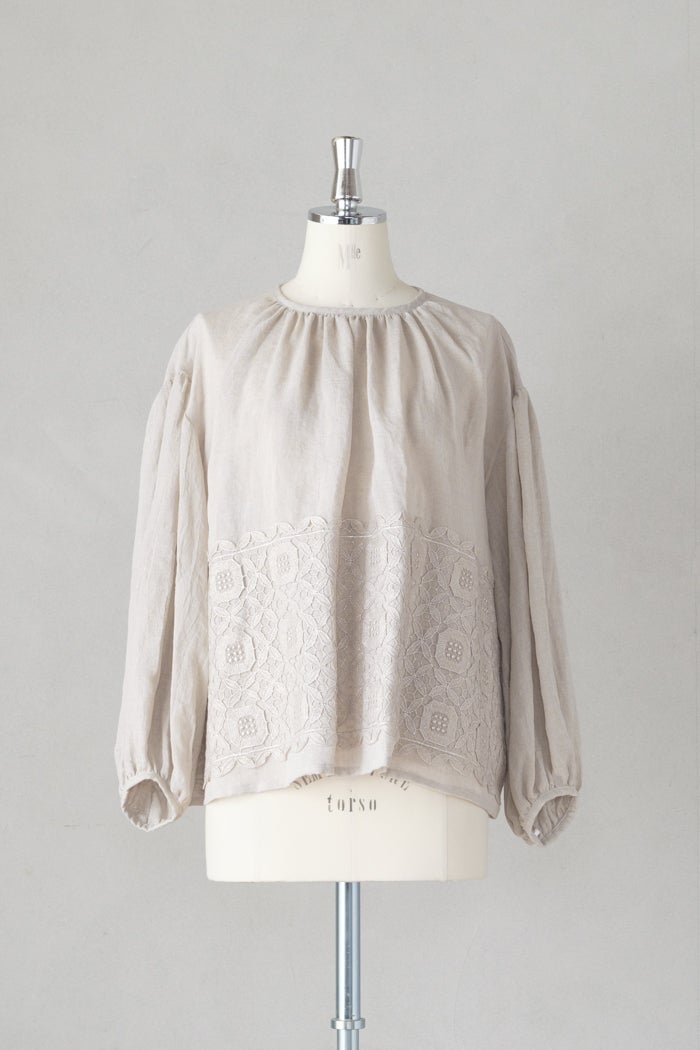 美しいレース刺繍が目を惹くリネンブラウス。