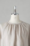 ベースは細番手のリネンを使用しており、柔らかくしなやかな着心地です。箔プリントが施されており、よそいき感のある上品な1枚。
