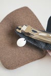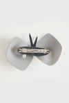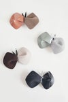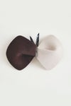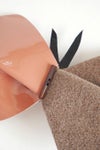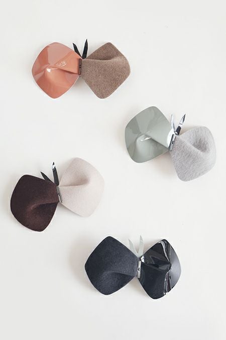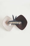 毎シーズン発表される×hitomi shinoyamaのコラボシリーズ。chouchoをかたどったバレッタ。牛革エナメルとラビットフェルトを組み合わせたデザインです。エナメルの光沢とフェルトの温もりが秋冬らしい素材感。いつものヘアスタイルに華やぎを添えてくれます。